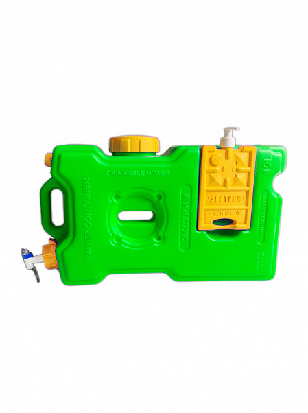 Эта зеленая канистра-умывальник рассчитана на максимальный объем в 19 литров. Ее удобная форма позволяет не только легко размещать ее вместе с грузами на лодке, но и переносить до места отдыха. Важной особенностью данной модели является возможность хранения питьевой воды или других жидкостей. Изделие выполнено из качественного пластика, который не деформируется даже после длительной эксплуатации. Данная модель прекрасно подходит для использования на природе или в моторной лодке. Вам не нужно брать с собой громоздкие пластиковые бутылки, когда рядом эта уникальная канистра от российского бренда Технохим.