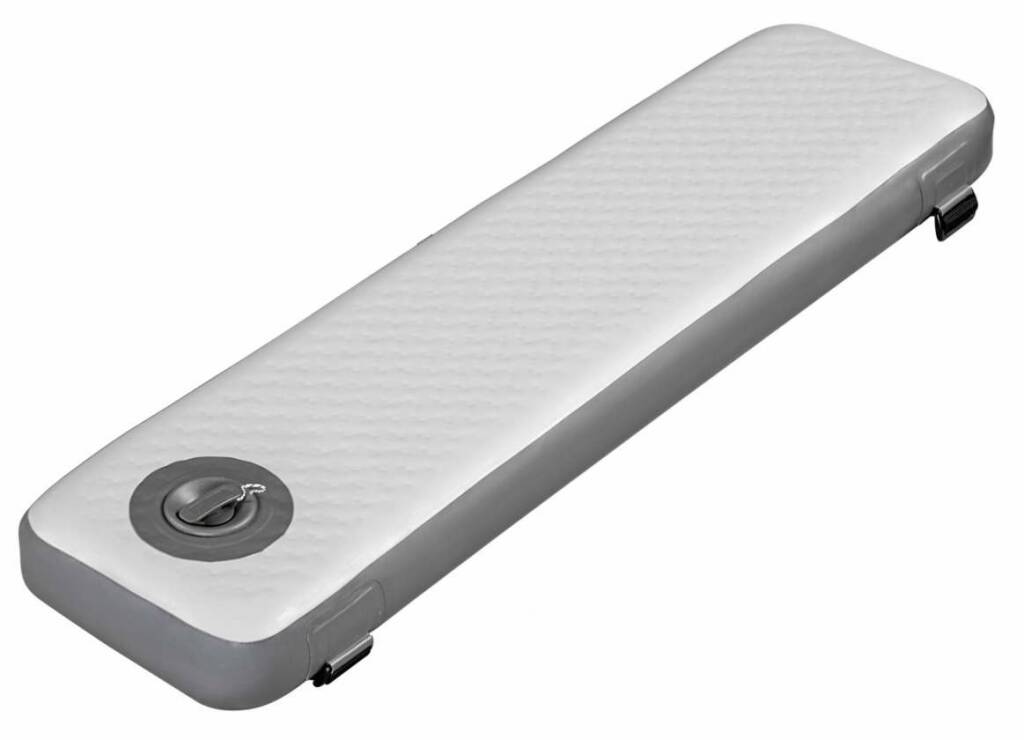 Надувная накладка на сиденье размером 1100 на 250 мм и толщиной 80 мм . Оснащена двумя крепежными ремнями для фиксации на фанерном лодочном сиденье. Накачивается через воздушный лодочный клапан типа «голубев».