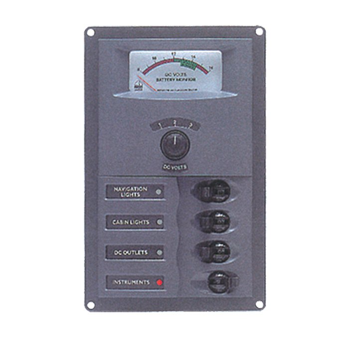 Кроме этого панель оснащена вольтметром 0 - 16 В с переключателем, позволяющим поочередно контролировать состояние трех аккумуляторных батарей.