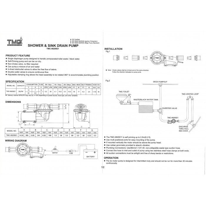 Насос самовсасывающий для "черных вод" 24В