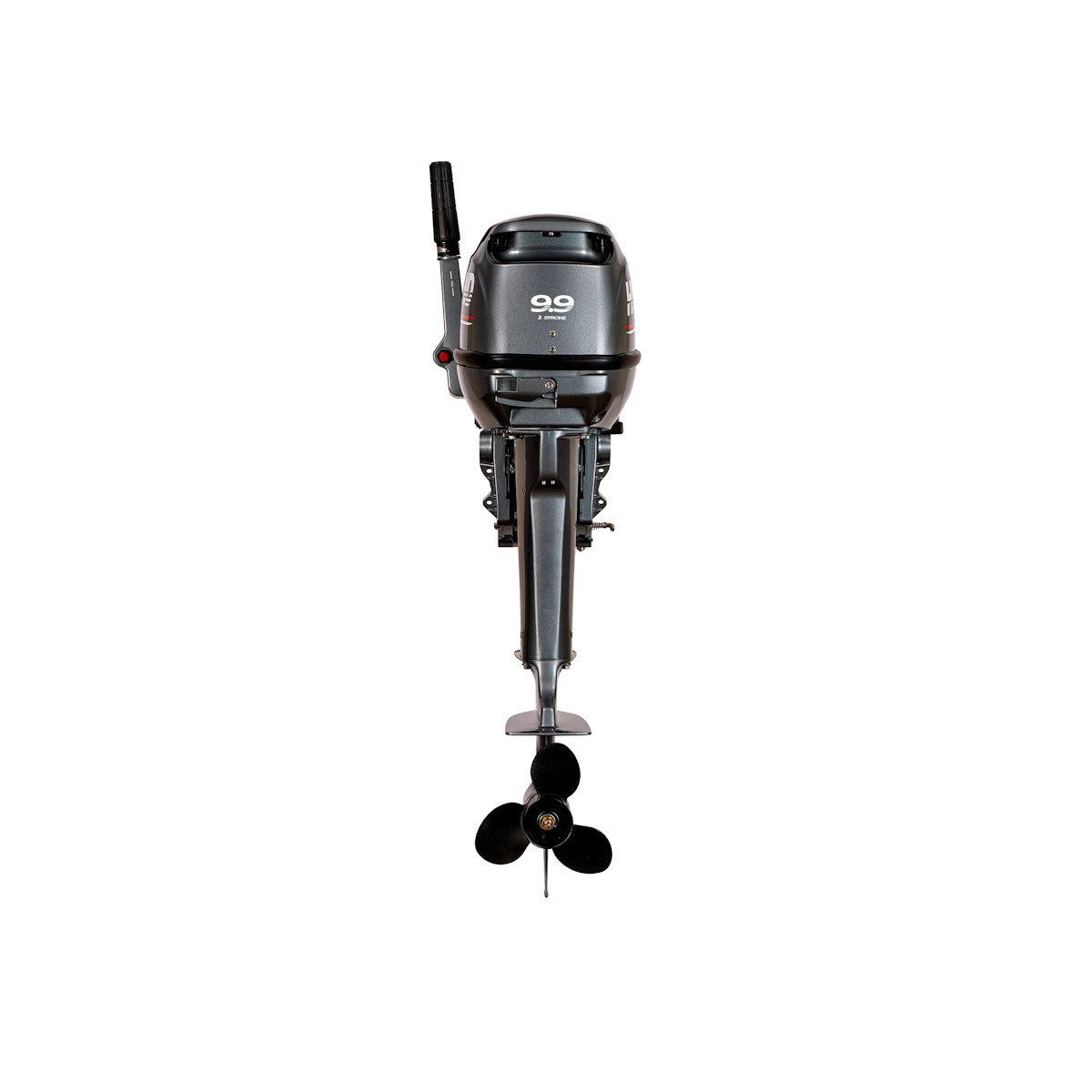 Этот двухтактный двухцилиндровый мотор объемом 246 см3 идеально подойдет множеству маломерных судов. Расшифровка МТО (OB 9.9 HS): двухтактный двигатель мощностью 9,9 л.с.; H - румпельное управление; S - короткий дейдвуд. Схема переключения передач F-N-R позволяет сделать управление более комфортным. Система зажигания CDI выдает стабильную искру в любых условиях. Вместе с мотором поставляются: топливный шланг с грушей, внешний топливный бак на 24 л, гребной винт AL черного цвета 9 1/4 Х 9, набор инструментов, руководство пользователя, запасная крыльчатка водяного насоса, чека и аварийный шнур с рукояткой для ручного запуска.