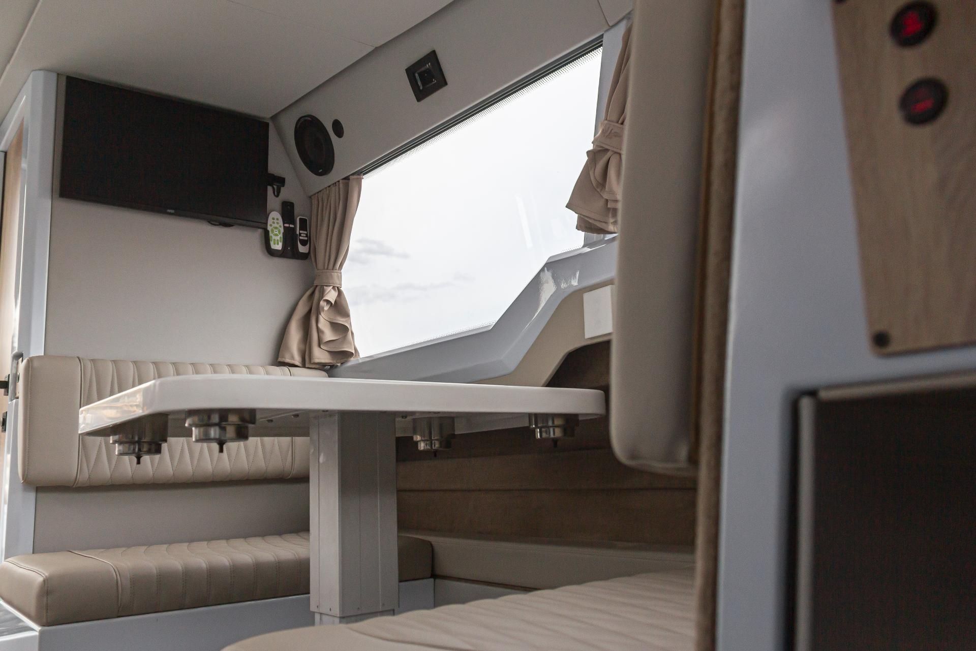- Отдых с комфортом: Кабина закрытого типа, отличная шумоизоляция и внутреннее освещение придают особую атмосферу каждому моменту на борту.