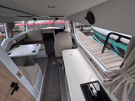 Это удивительное судно становится вашей второй домашней гаванью, настоящим убежищем от городской суеты и ежедневных забот. VOYAGER 850 CABIN представляет собой роскошный катер премиум-класса, созданный для незабываемых впечатлений и комфортных путешествий по бескрайним водным просторам.