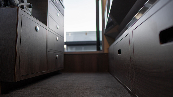 - Коридорный доступ — позволяет свободно перемещаться между кокпитом и каютой