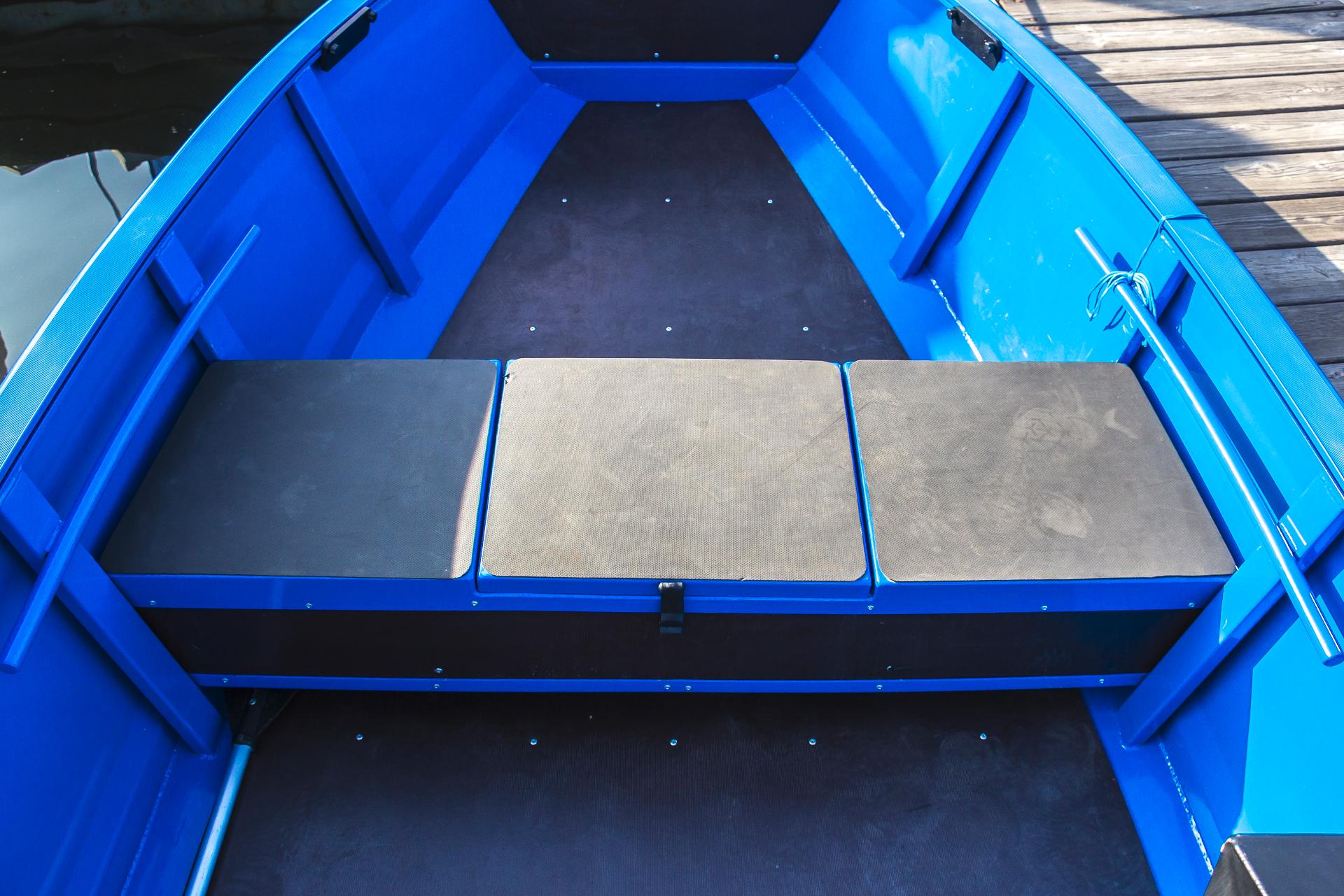 - Просторный кокпит: Конструкция корпуса шириной 1,72 м обеспечивает высокую степень устойчивости и создает комфортные условия для рыбалки вдвоём-втроём одновременно.