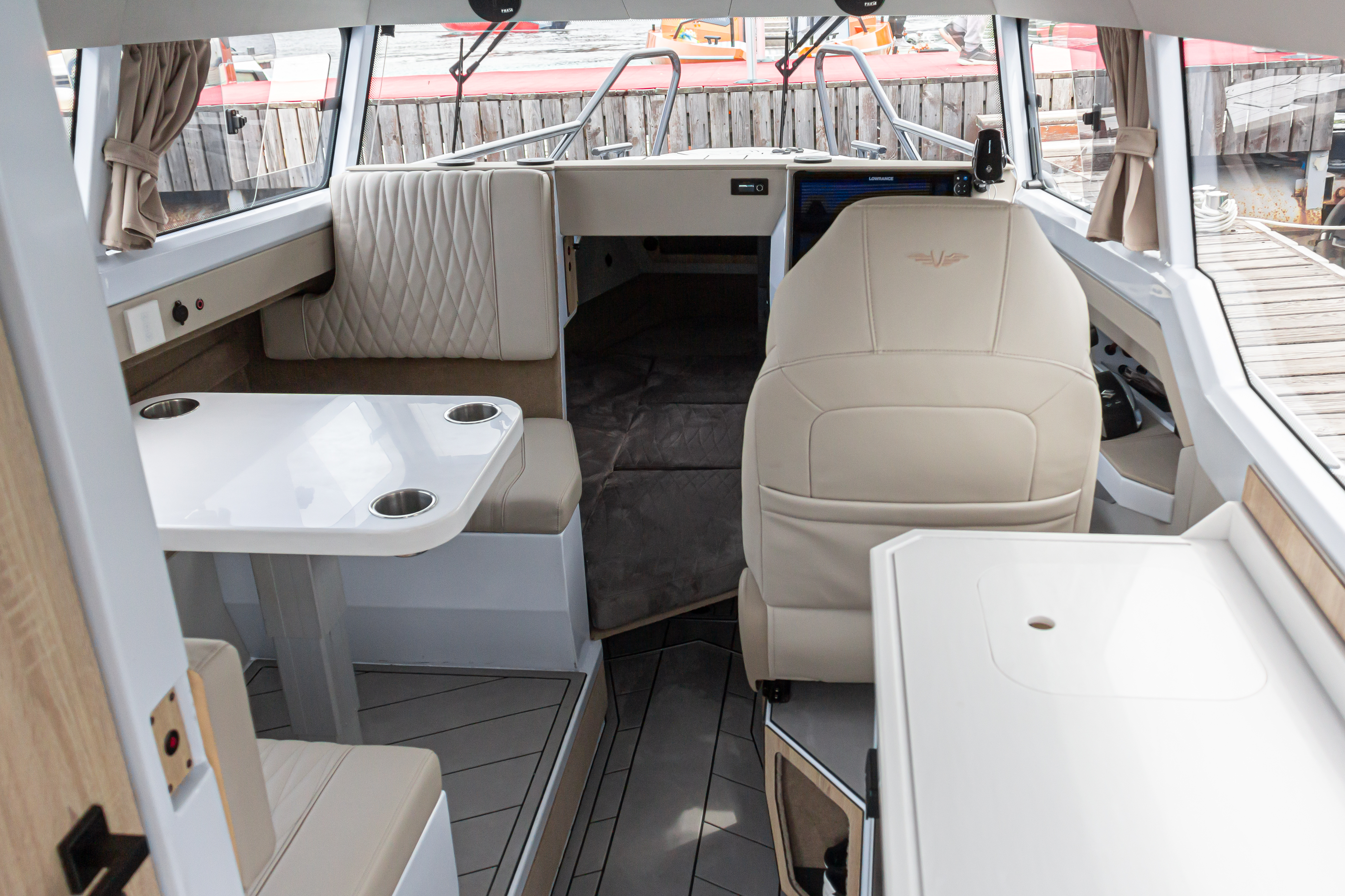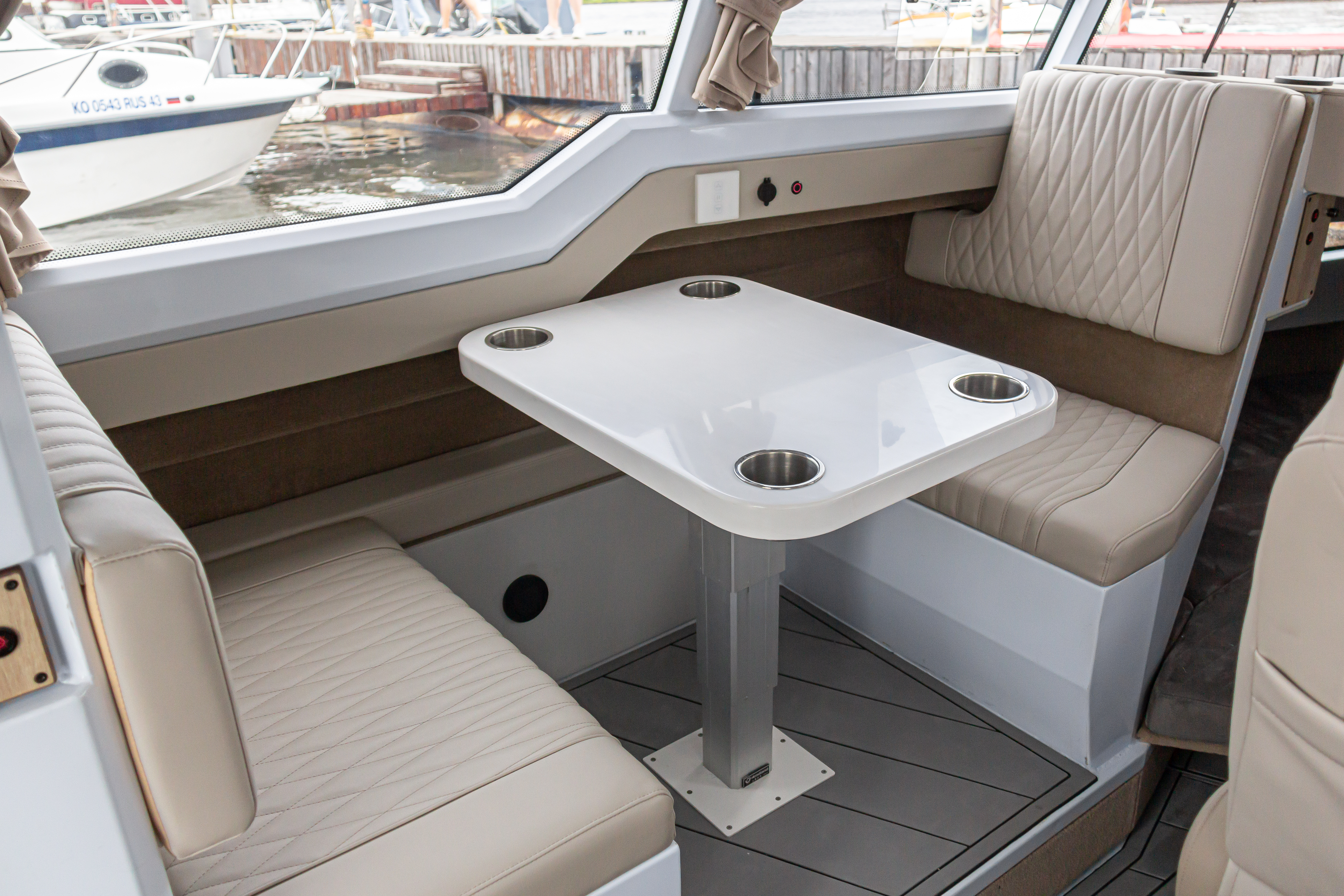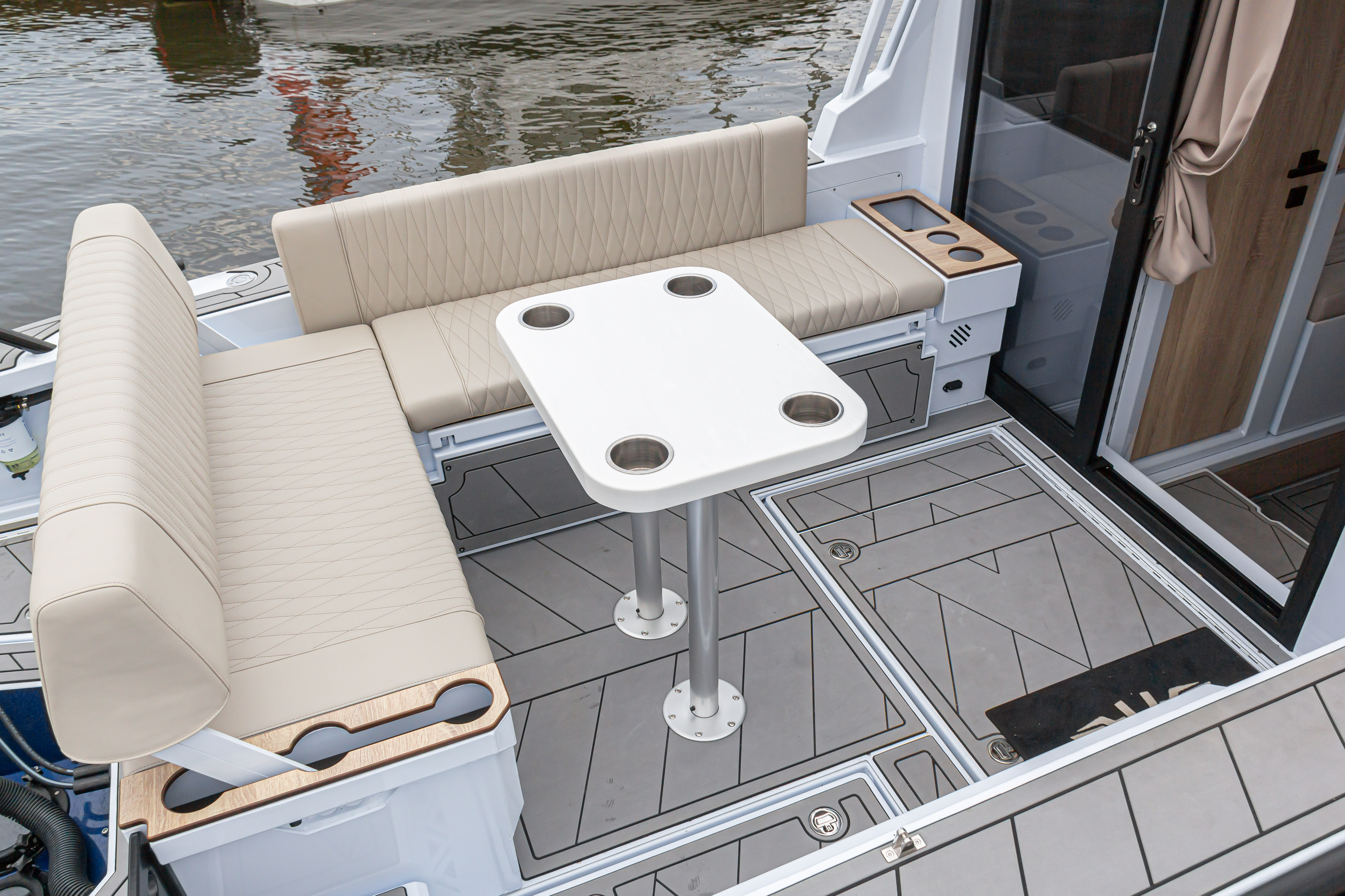- Рундук-сиденье для кормового кокпита с мягкими подушками по левому борту