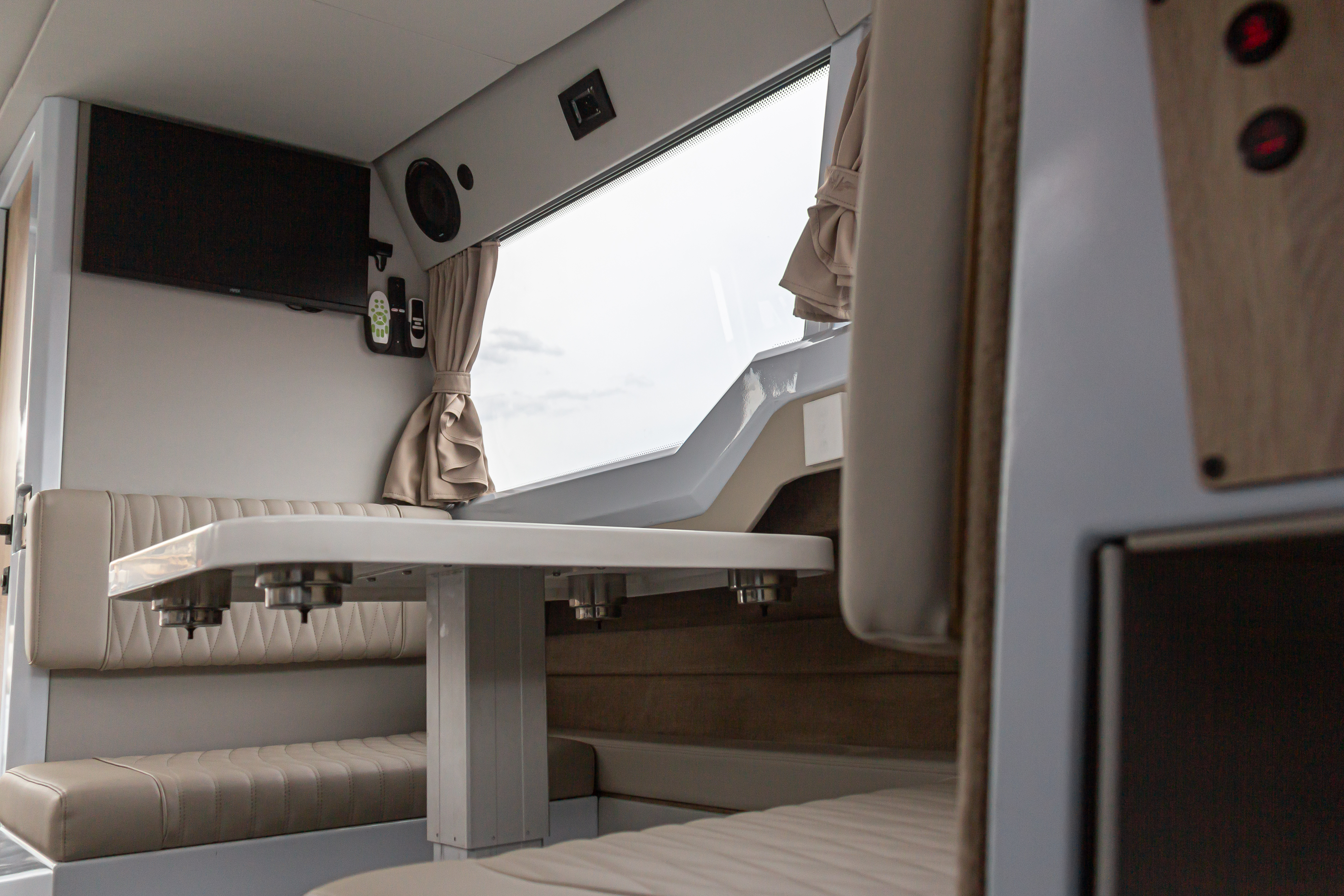 - Розетка USB на водительской консоли, пассажирской консоли, в каюте и около стола в салоне