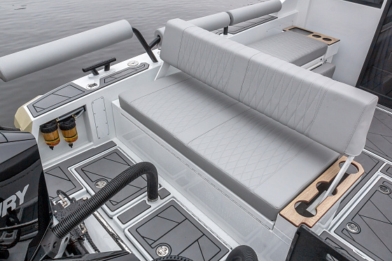 Лодка рассчитана на двигатели мощностью до 500 л.с. и оснащена топливным баком на 480 литров — хватит для дальних маршрутов без лишних остановок. Динамика впечатляет, а расход оптимален для своего класса.
