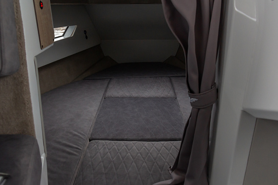 VOYAGER 850 Cabin — это лодка, где закрытая кабина не просто элемент дизайна, а полноценное убежище от ветра и непогоды. Внутри — три спальных места, оборудованный гальюн и кухонный блок с мойкой и холодильником. Подойдет для ночёвок, семейных путешествий или дальних выездов — в этой лодке всё рассчитано на комфорт и автономность.