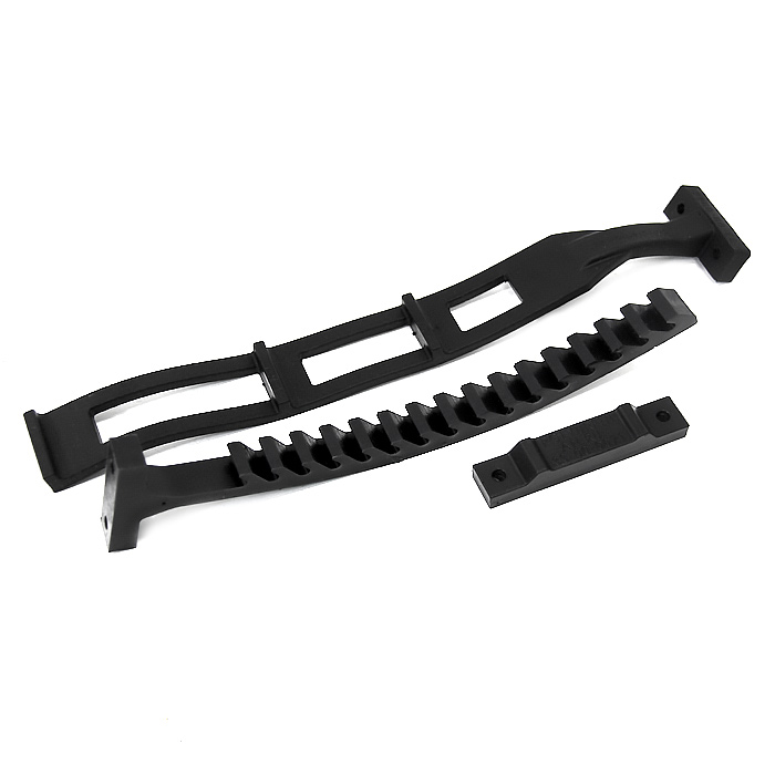 Зажим крепежный из прочного, износостойкого полиуретана. Конструктивно состоит из трех элементов, каждый из которых крепится на поверхность по-отдельности на нужном расстоянии: ремень с прорезями, ребристая часть, площадка опорная.