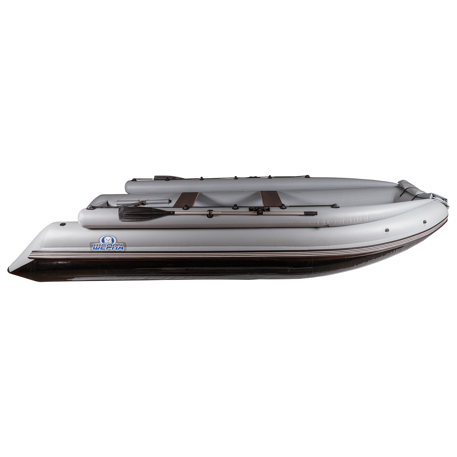Лодка ПВХ Выдра Шерпа 500 Jet (фальшборт+ бронирование дна и баллонов ТПУ) серый