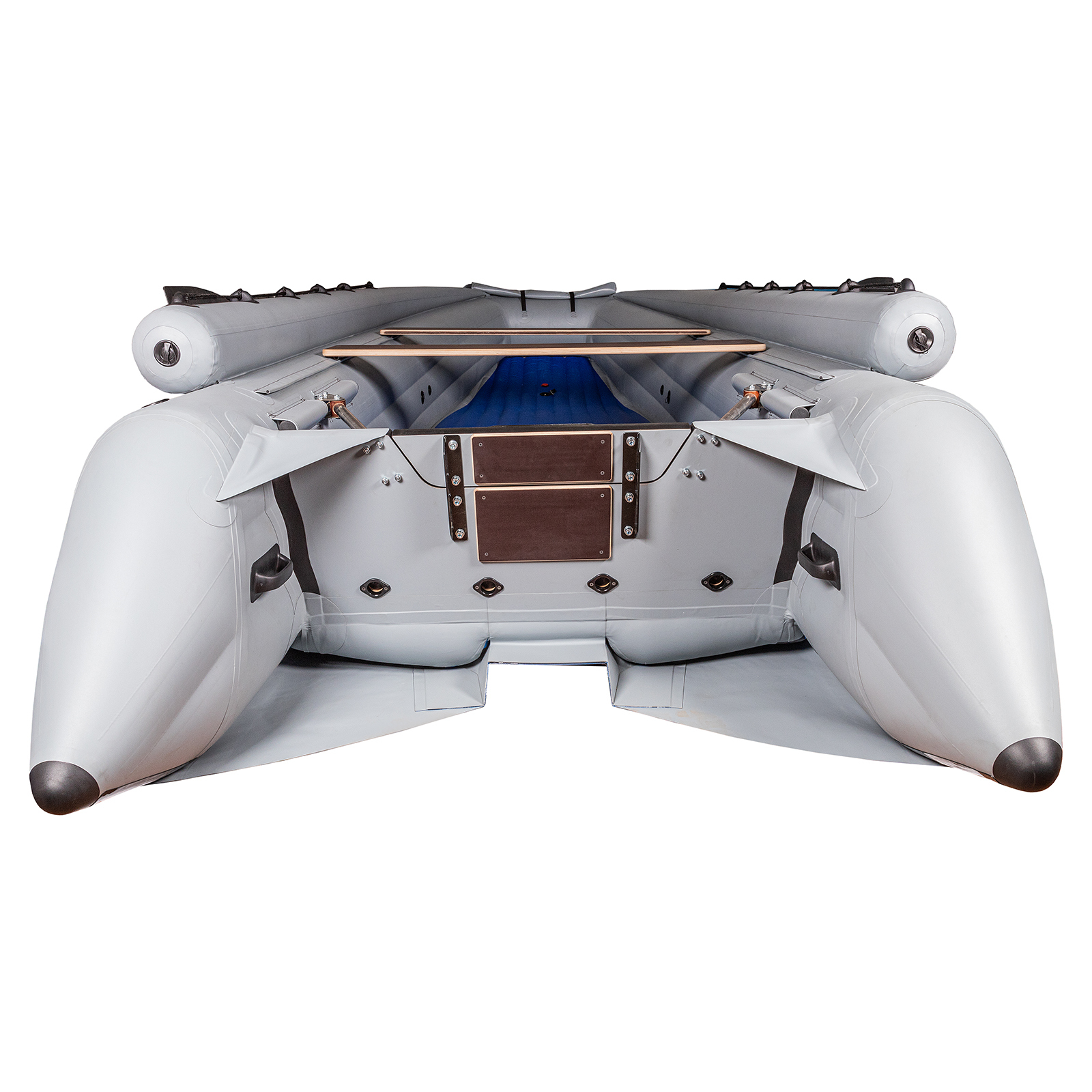 Модель Выдра Шерпа 500 Jet оснащена разъемным транцем, позволяющим использовать как водометную насадку, так и гребной винт. Усиленный транец рассчитан на мощность двигателя до 60 л.с., что делает лодку универсальным средством для различных водных активностей. Высокая грузоподъемность в 1100 кг и вместимость до 10 человек подчеркивают надежность конструкции. Применение плотной ткани плотностью 1100 г/м² гарантирует устойчивость к механическим повреждениям. Бронирование дна и баллонов из ТПУ существенно повышает износостойкость изделия. Витринный образец лодки «Выдра Шерпа 500 Jet» - это отличный выбор для тех ценителей качества, функциональности и по-настоящему низких цен.
