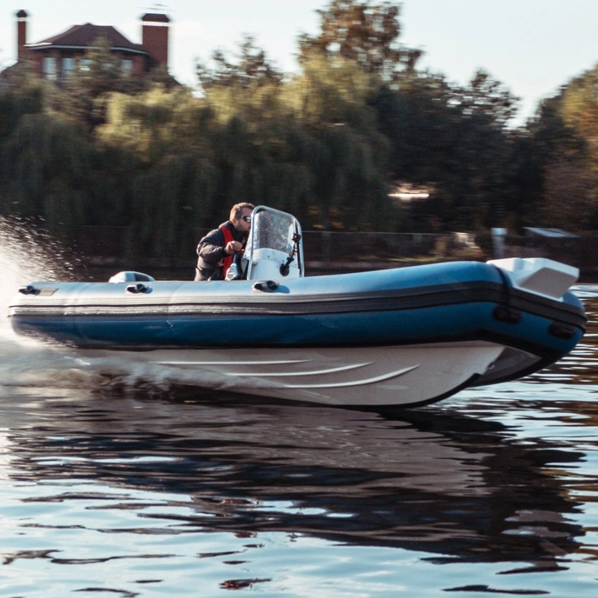 Мореходность - позволяет выйти на воду даже в сильную волну (благодаря небольшому весу имеет значительно меньшую осадку по сравнению с корпусной лодку, что позволяет преодолевать волну в 1-1.2 метра и при этом чувствовать себя достаточно уверено)/