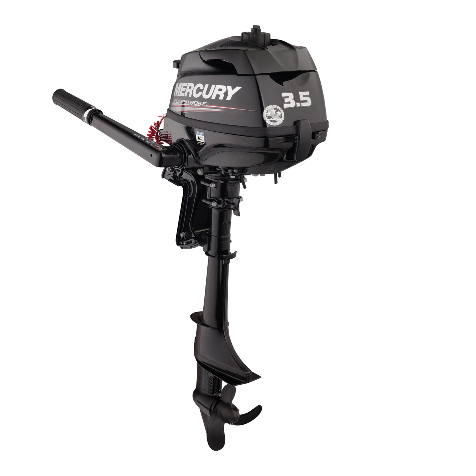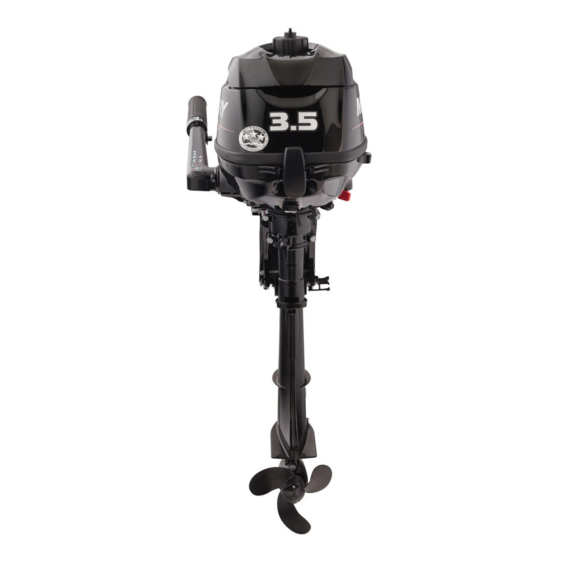 Данная модель лодочного мотора - одноцилиндровая, рабочий объем составляет 85 см³, а максимальные обороты варьируются в диапазоне от 5000 до 6000 об/мин. Встроенный топливный бак объемом 1 литр идеально подходит для небольших прогулок или рыбалки. Смазка этого карбюраторного мотора осуществляется путем разбрызгивания. Разрядно-емкостная система зажигания CDI делает работу Mercury F3.5M максимально ровной и предсказуемой. Управление двигателем осуществляется с помощью румпеля, владельцу доступны передняя и нейтральная передачи. Также стоит отметить, что устройство оснащается классической системой ручного запуска. Лодочный мотор американского бренда Mercury собирается в Японии, покупатель получает богатую комплектацию. Данная модель славится простотой обслуживания и феноменальной ремонтопригодностью.