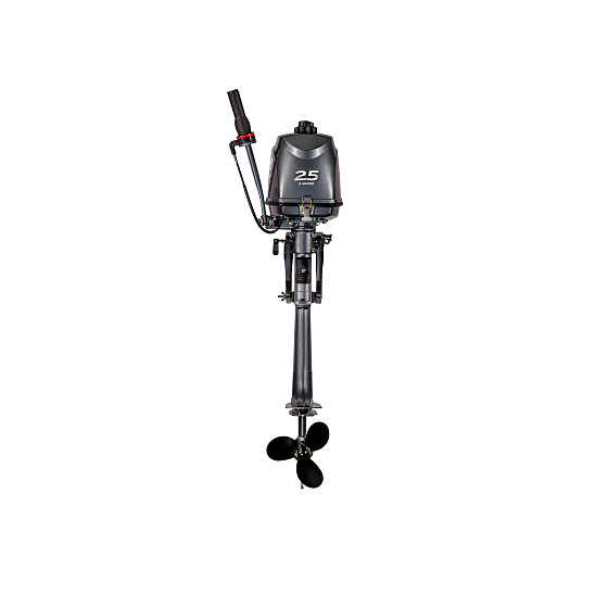 Этот бензиновый двухтактный одноцилиндровый двигатель имеет рабочий объем в 60,4 см³. Мощность мотора достигает 2,5 л.с., а максимальные обороты находятся в диапазоне от 4000 до 5500 об/мин. Передовая система водяного охлаждения делает этот мотор невероятно эффективным и продлевает срок службы. Система зажигания CDI стабильно выдает искру в самых разных условиях. Модель имеет короткий дейдвуд (S), что делает ее подходящей множеству маломерных судов. Румпельное управление является отличным решением для компактных моторов. Владельцу доступна одна передача F (вперед), маневрирование осуществляется с помощью поворота двигателя. Благодаря использованию современных технологий и качественных материалов этот мотор будет служить вам долгие годы. Эта модель двигателя не требует регистрации в ГИМС, что очень удобно.