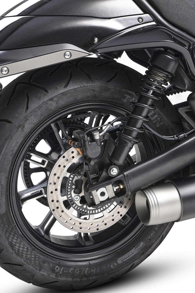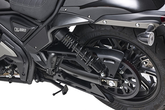 Сердцем мотоцикла CALIBRO CUSTOM является высокотехнологичный двигатель, который в сочетании с ременной передачей гарантирует легкость обслуживания и плавную, бесшумную передачу мощности. Этот подход повышает надежность мотоцикла и подчеркивает заботу производителя о практичности ежедневной эксплуатации. Топливный бак объемом 15 л позволяет преодолевать значительные расстояния без частых остановок для дозаправки. Встроенный USB-порт и интуитивно понятный дисплей в аналоговом тахометре предоставляют всю необходимую информацию о состоянии мотоцикла в реальном времени.