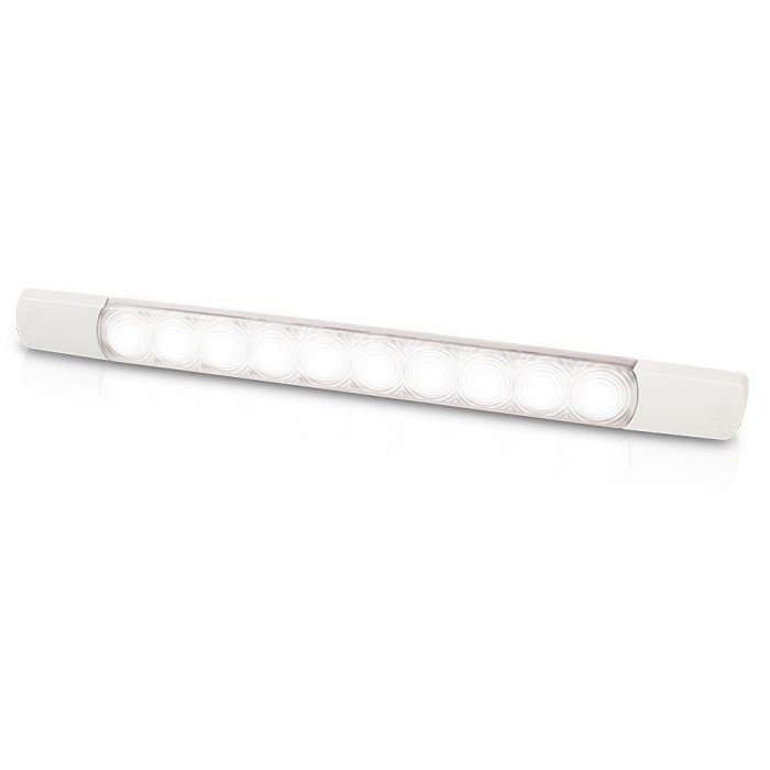 Светильник удлиненной формы от Hella Marine для наружного монтажа, полностью герметизированным корпусом и высокой светоотдачей, предназначен как для освещения интерьеров, так и для вспомогательной подсветки палуб. Малая потребляемая мощность, присущая светильникам вспомогательного света, предоставляет равномерное мягкое освещение теплого белого, синего либо красного цвета.