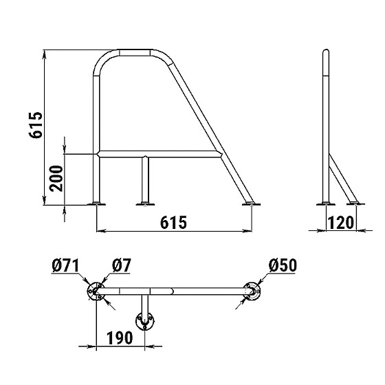 Устанавливается в носовую часть плавсредства, не имеющего штатных поручней или жёсткого леерного ограждения.