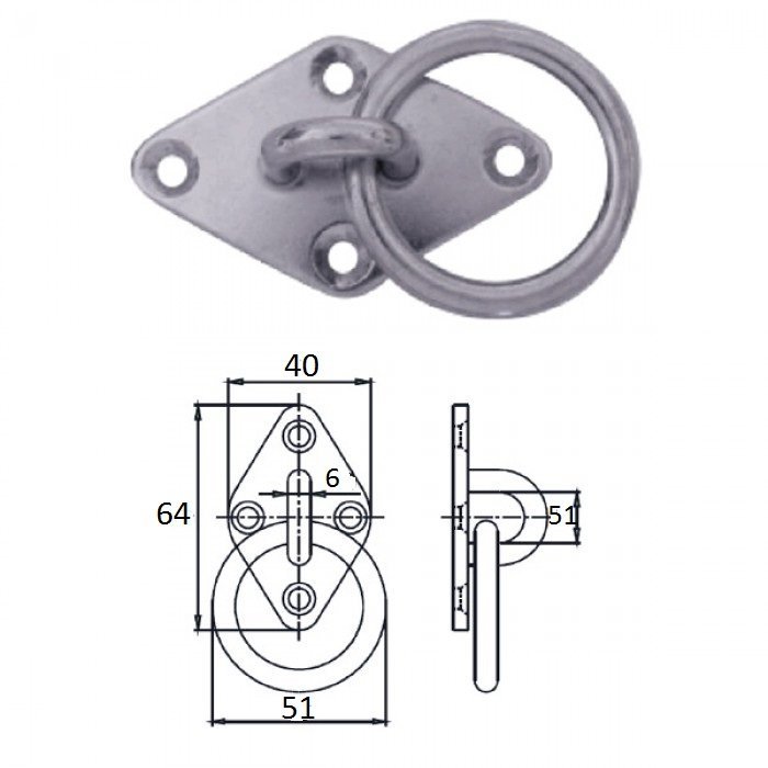 Планка ромб с кольцом 6 мм AISI304