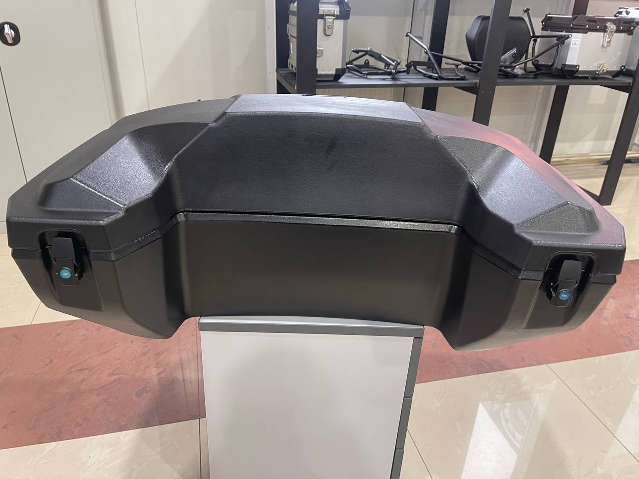 Кофр выполнен в современном дизайне, а сложная геометрия при аналогичном весе со старым кофром R303 увеличивает прочность за счет наличия ребер жесткости.