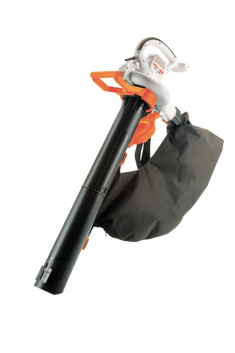 Электрический двигатель мощностью 2,6 кВт обеспечивает высокую производительность воздушного потока до 720 кубометров в час. В комплекте с воздуходувкой идет плоская насадка, которая помогает эффективно сдуть мусор и листву. Комплект переоснащения в садовый всасывающий измельчитель позволяет быстро и легко переключаться из режима воздуходувки в режим всасывания мусора без необходимости использования инструментов.