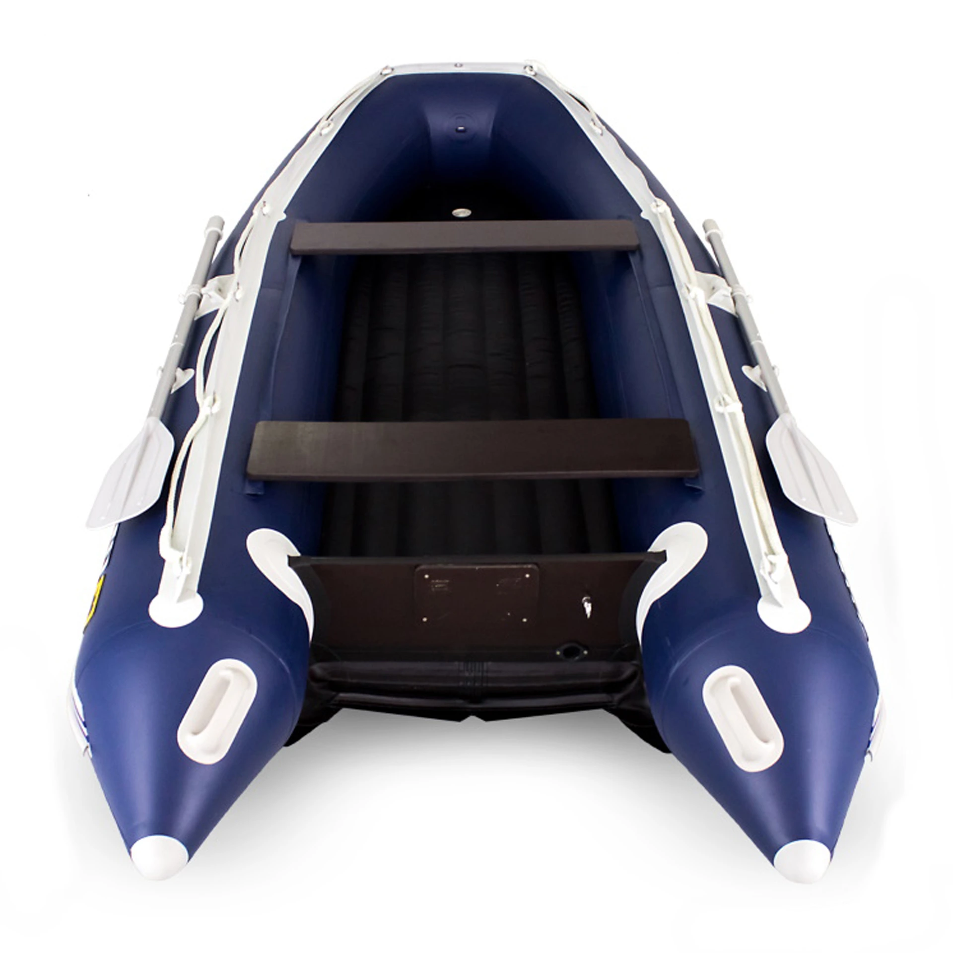 В комплект поставки входит: руководство по эксплуатации (паспорт); 2 весла; 2 сидения; рем. набор (клей, ПВХ-ткань, инструкция по ремонту); насос ножной 5 л.; манометр; сумка для лодки.
