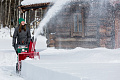 Снегоуборщик оснащен системой поворота с муфтой, обеспечивающей превосходную маневренность на ограниченной площади. Выпускной желоб регулируется электрическим джойстиком, расположенным на панелях управления блока.