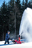 Куски снега попадают в шнек, где тщательно перемалываются, после чего с большой скоростью выбрасываются через желоб.