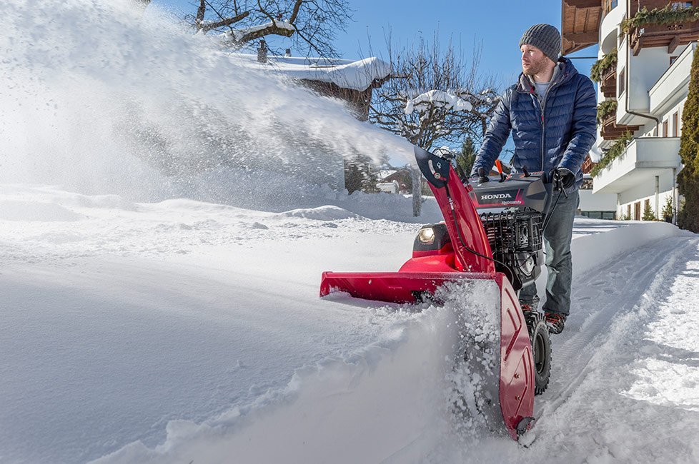 На официальном сайте нашего магазина вы можете купить бензиновый снегоуборщик Honda HSS 970 A ET, оснащенный профессиональным 4-тактным двигателем Honda GX 270 с рабочим объемом 270 см³ и мощностью 6,0 кВт. Двигатель работает на бензине АИ-92. Система двухступенчатого выброса снега и ширина очистки в 71 см позволяют быстро устранять снежные заносы, справляясь с объемами до 52 тонн в час. Исключительная дальность выброса снега достигает 16 метров. Гусеничный ход обеспечивает отличное сцепление и проходимость по различным покрытиям, включая наклонные участки и пересеченную местность.
