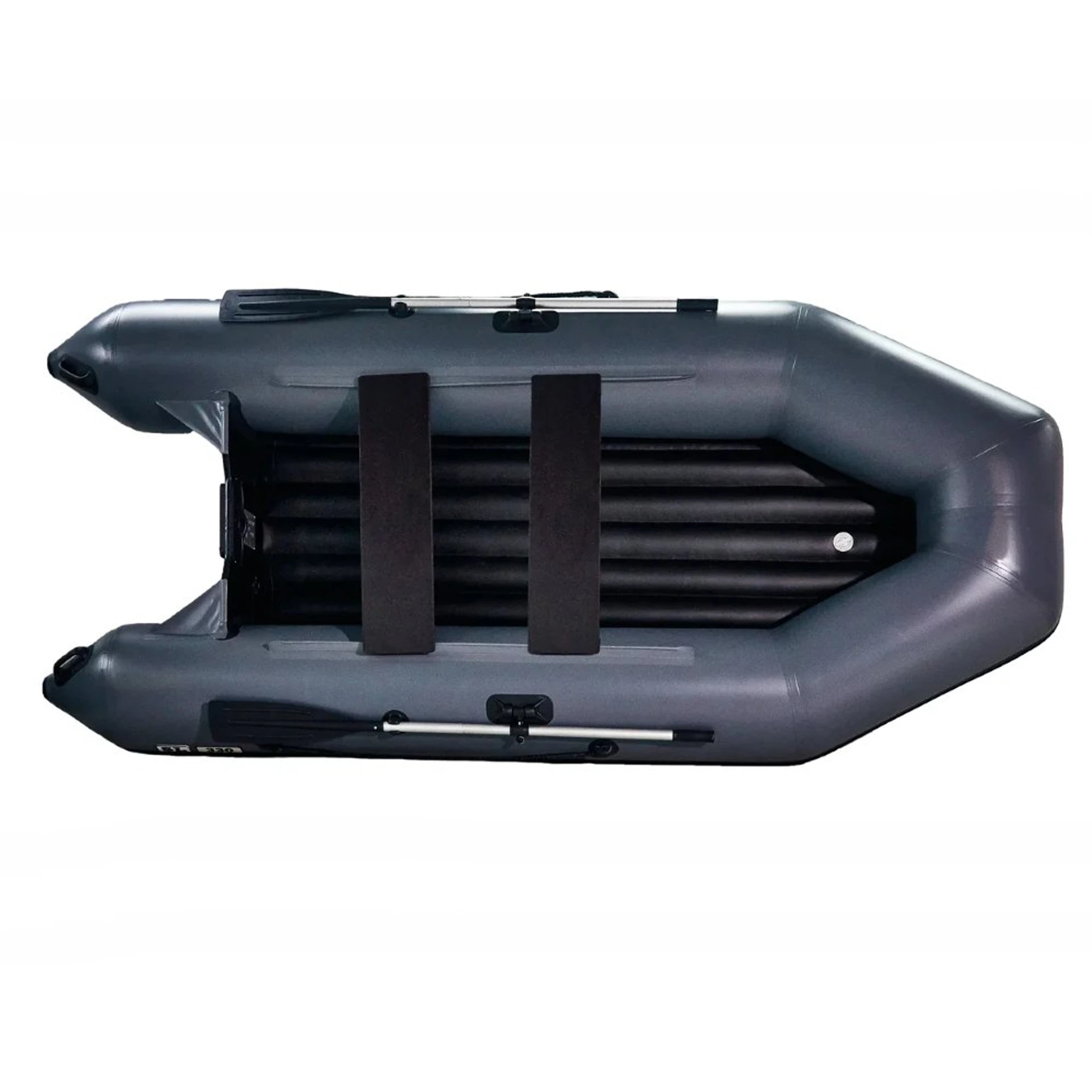 Лодка является 100% облегченным клоном старшего брата SOLAR-350. Ткань баллона имеет плотность 750- гр/м. днище 950 гр/м. В комплект поставки входит: 2 весла; 2 сидение; рем. набор (клей, ПВХ-ткань, инструкция по ремонту); насос ножной 5 л.; манометр; сумка для лодки.