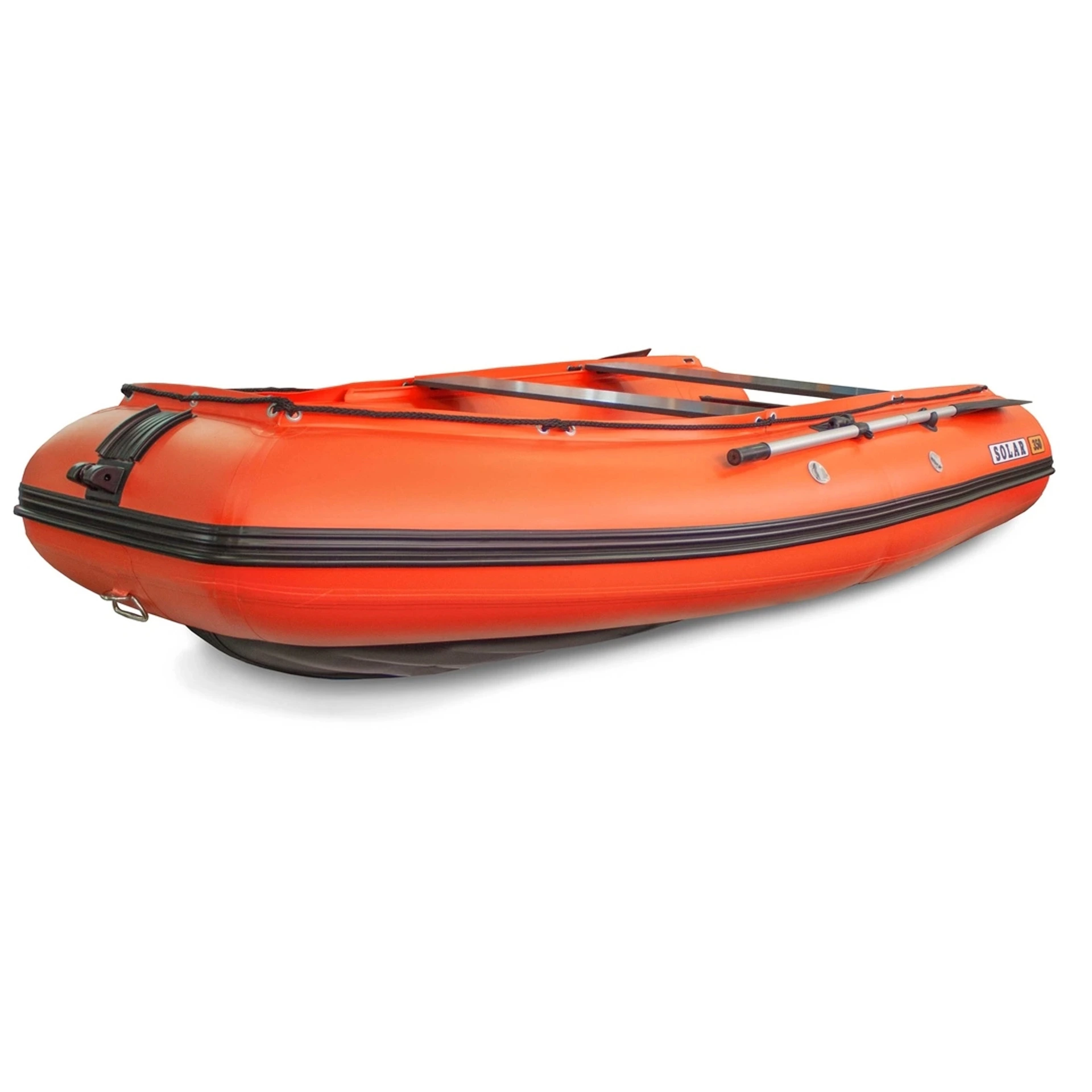 Модель Solar Максима длиной 350 см рассчитана на трех человек и обладает внушительной грузоподъемностью в 500 кг. Лодки серии «Максима» хорошо зарекомендовали себя в суровых условиях, что подтверждает их продуманная конструкция. Для обеспечения повышенной прочности килевая часть и днище усилены дополнительным слоем ПВХ-ткани. Внутри лодки пол имеет сплошное противоскользящее покрытие, что гарантирует безопасность даже во влажной среде. Такая конструкция обеспечивает уверенное передвижение по мелководью, заросшим камышом участкам и водоемам с затопленными корягами. Это готовое и проверенное решение для рыбалки или активного отдыха на воде, которое можно купить в нашем фирменном московском салоне по привлекательной цене.