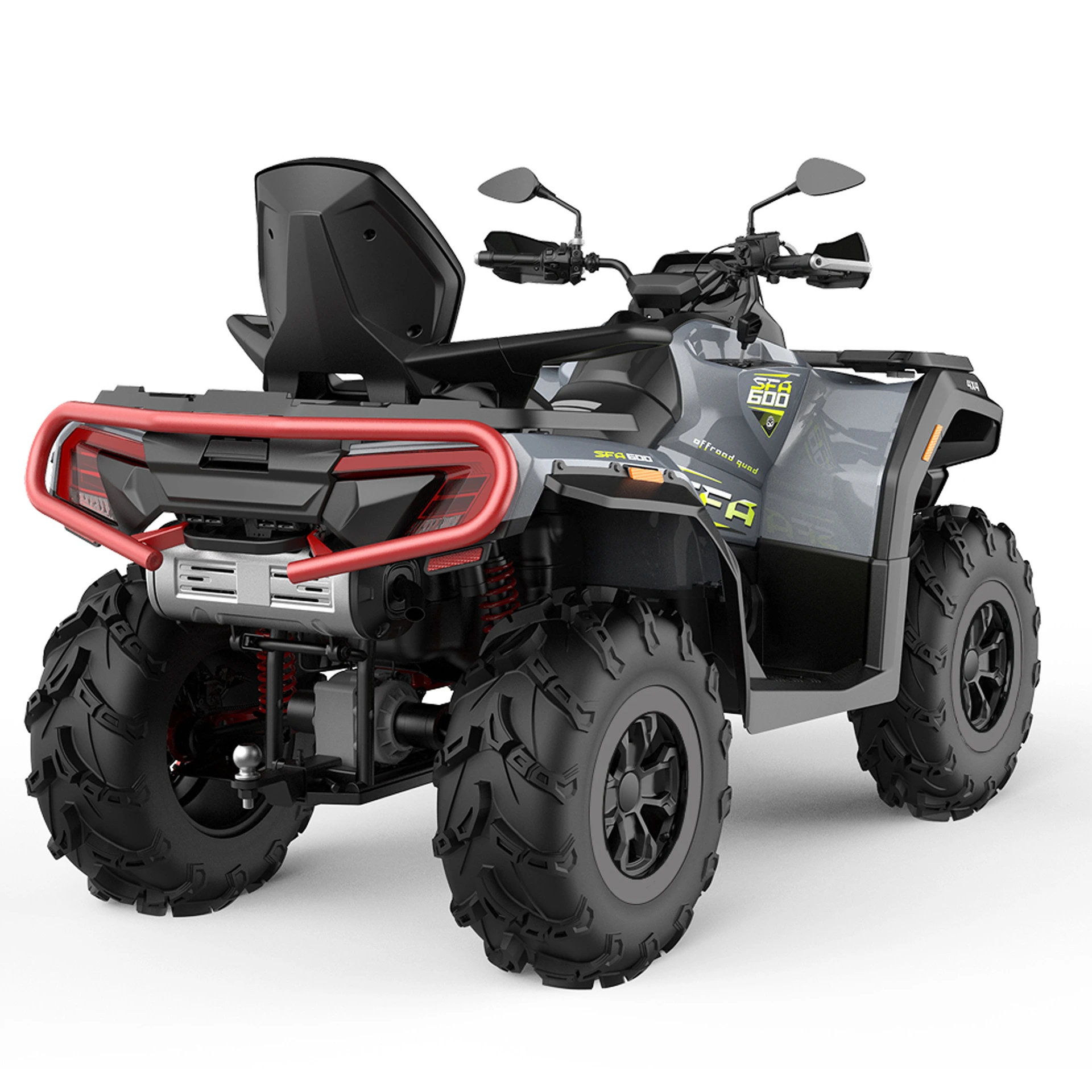 Безопасность управления гарантирует тормозная система с эргономичным ручным приводом. Механизм распределения усилий между колесами обеспечивает эффективное замедление на любом покрытии. Особого внимания заслуживает трансмиссия: надежный вариатор дает линейную передачу мощности и моментальный отклик на газ. Такая конфигурация повышает динамику и способствует оптимизации расхода топлива, делая квадроцикл Таврида SFA 600 эталоном функциональности для самых разных активностей.