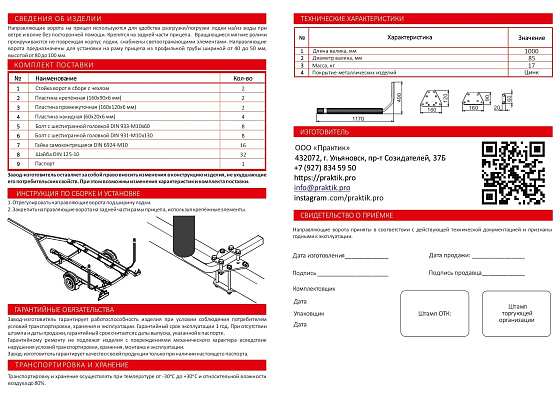 Направляющие устанавливаются на прицеп при помощи оцинкованного крепежа (поставляется в комплекте). Защитное покрытие - цинк. Устойчивы к коррозии.
