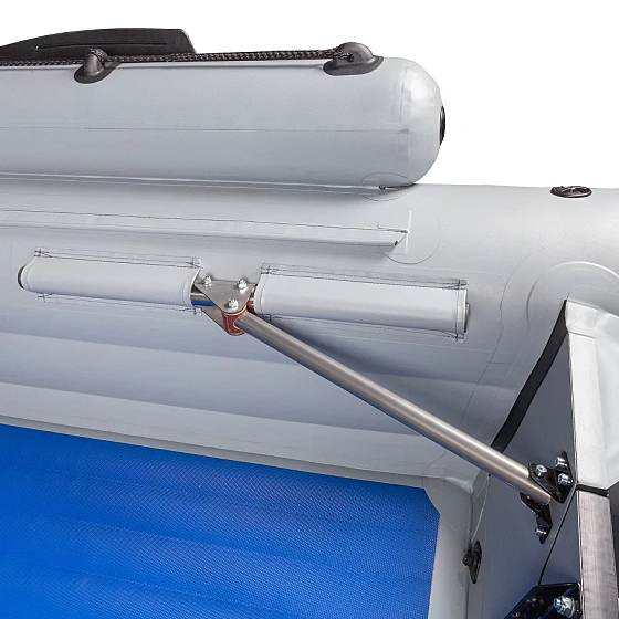 Лодка ПВХ Выдра 500 Jet в сером цвете подойдет любителям водных приключений и активного отдыха. Данная модель была создана для охоты и рыбалки. Она сочетает в себе продуманную конструкцию и высокую функциональность. Особенностью ПВХ-лодки Выдра Шерпа 500 Джет является инновационный дизайн корпуса со сжатым вертикальным бортом, который позволяет максимально увеличить полезное пространство кокпита. Несмотря на внушительные габариты (5 м в длину и 1,85 м в ширину), модель обладает маневренностью и грузоподъемностью до 1000 кг, что делает ее универсальной для различных водных активностей.