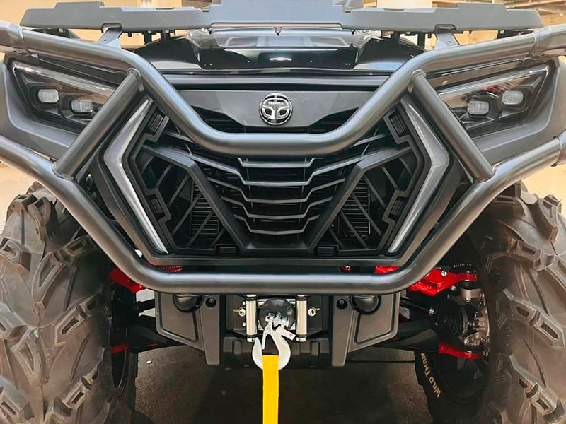 Ходовая часть и трансмиссия квадроцикла Таврида СФА 1000 спроектированы для работы в режиме предельных нагрузок. Надежный вариатор гарантирует плавную передачу крутящего момента и мгновенную реакцию на нажатие рычага газа. Независимая подвеска с передними А-образными рычагами и задней продольно-рычажной системой эффективно нивелирует неровности трассы. Легкие диски, укомплектованные бэдлоками, позволяют эксплуатировать мототехнику на пониженном давлении в шинах без риска разбортировки. Высокий дорожный просвет и агрессивный протектор обеспечивают хорошую проходимость. Комфорт управления обеспечивается интеллектуальным электроусилителем руля с тремя предустановленными режимами: стандарт, комфорт и спорт. Это техническое решение позволяет адаптировать чувствительность управления под конкретные навыки водителя. Безопасность дополняется эффективной тормозной системой и яркой LED-оптикой. Мощная система охлаждения с производительной помпой сохраняет работоспособность мотора даже в экстремальную жару.