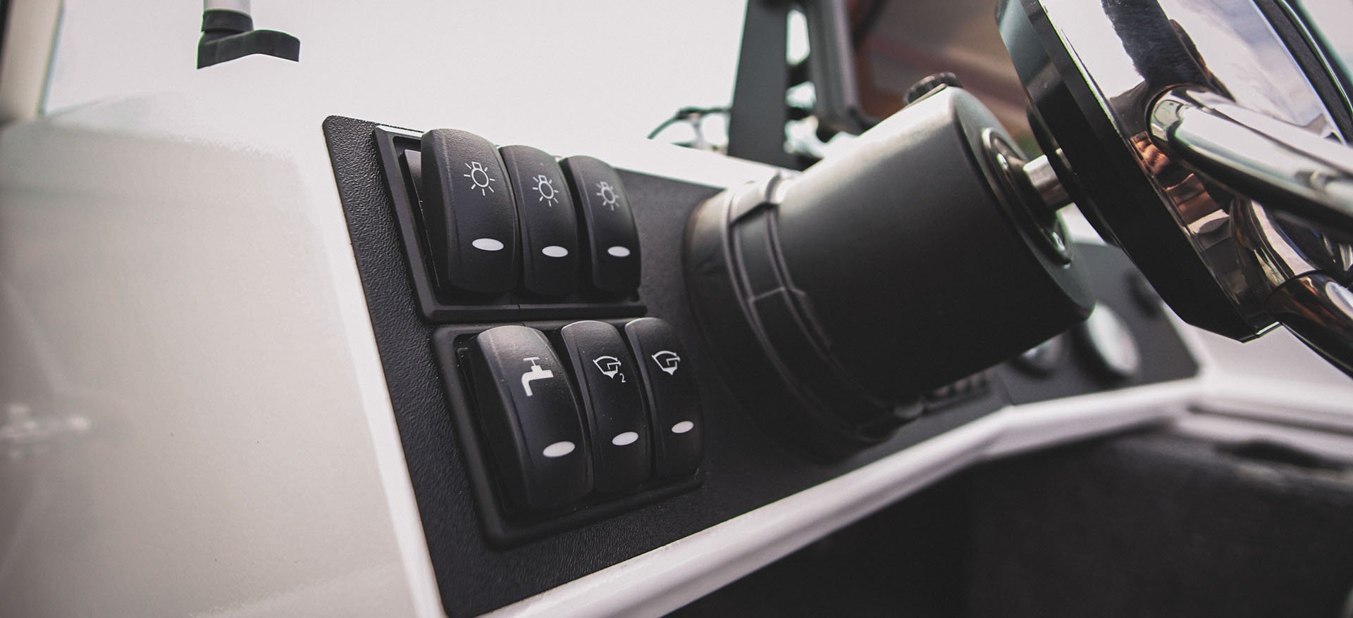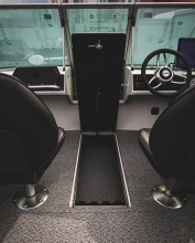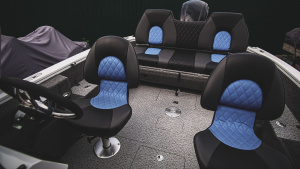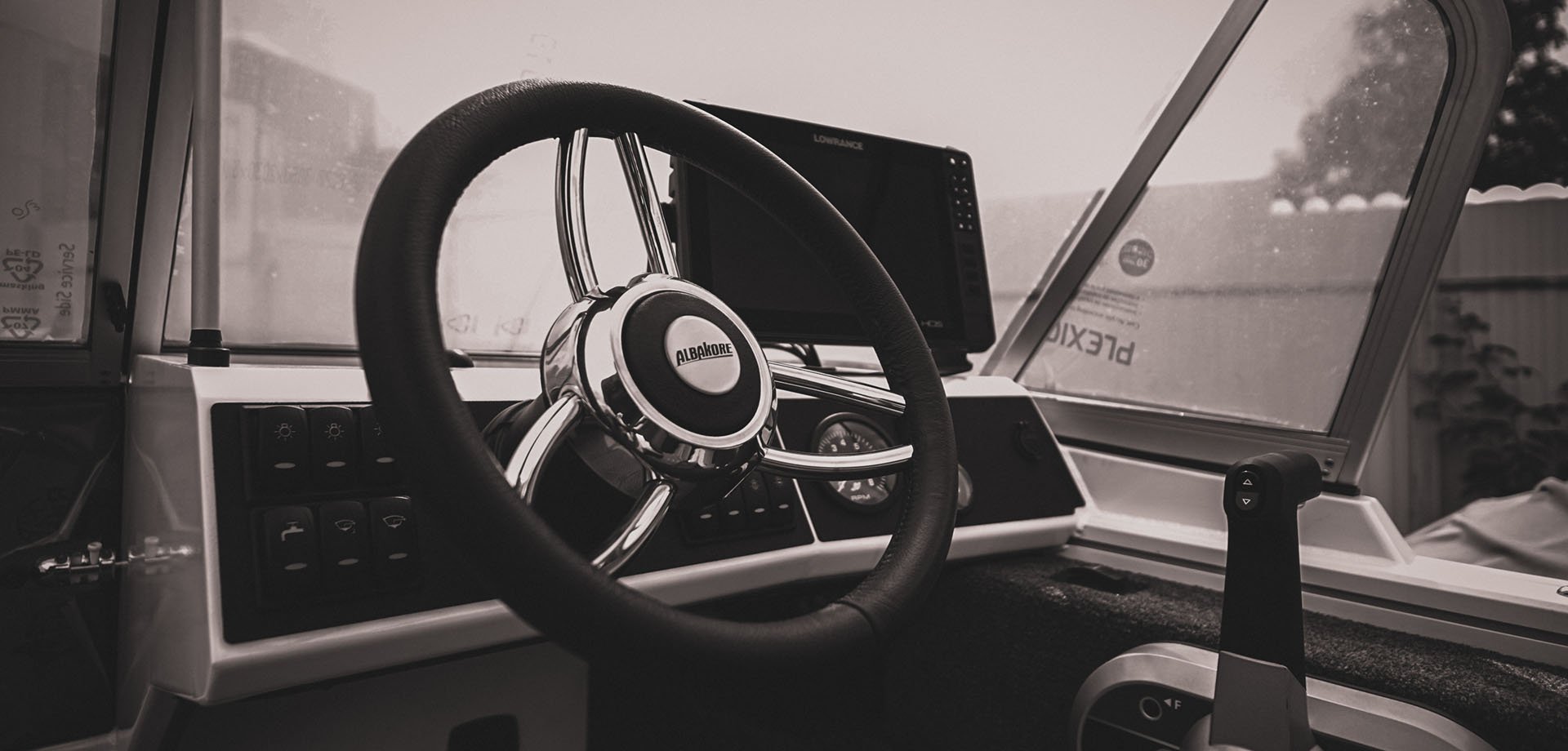 Разумеется, для комфортной рыбалки одного мотора мало, поэтому для данного Albakore 500 Fish был проведен целый комплекс работ по установке гидравлического рулевого управления, носового электромотора MotorGuide, рыбопоискового оборудования Lowrance. Кроме того, довели до ума рундуки, пошили индивидуальный тент и уделили много внимания важным мелочам, таким как швартовые утки, ходовые огни, кнопки на водительской консоли и т. д.