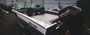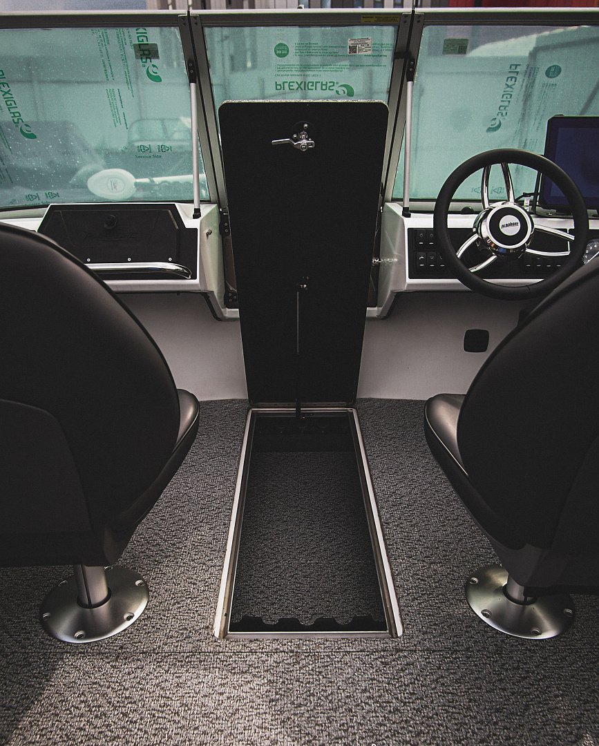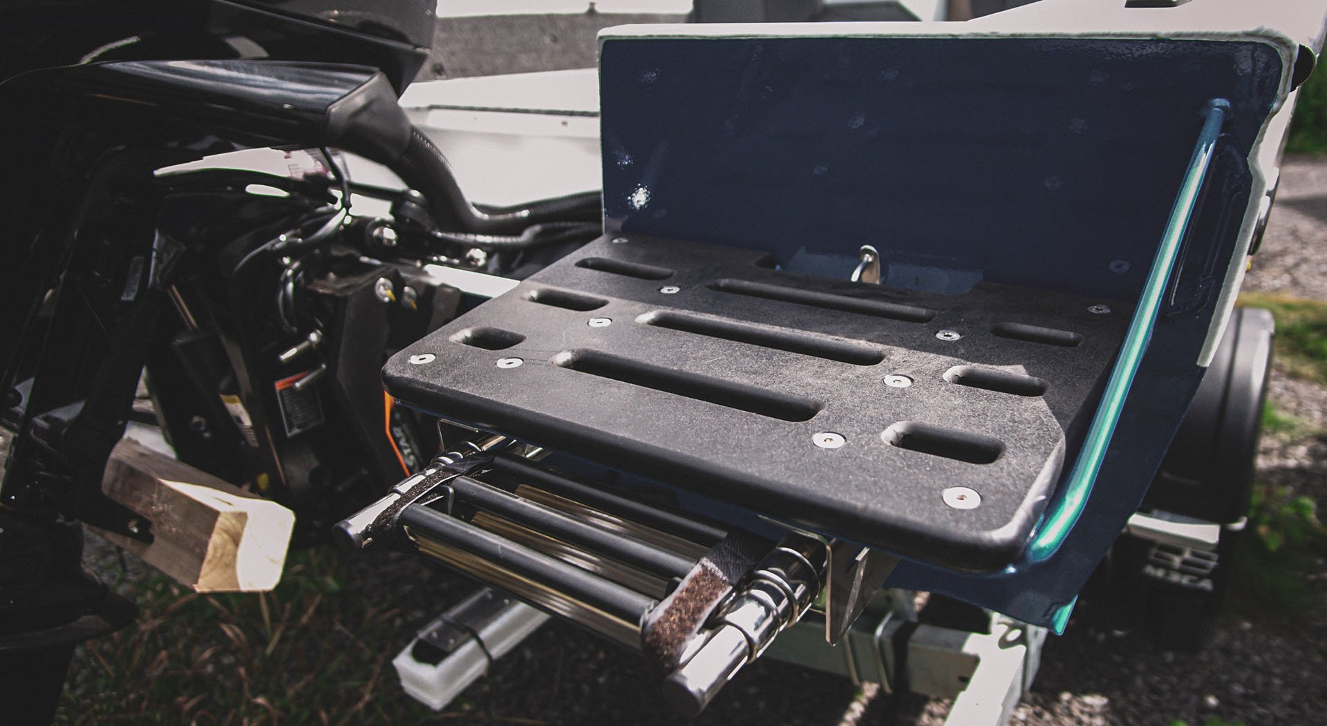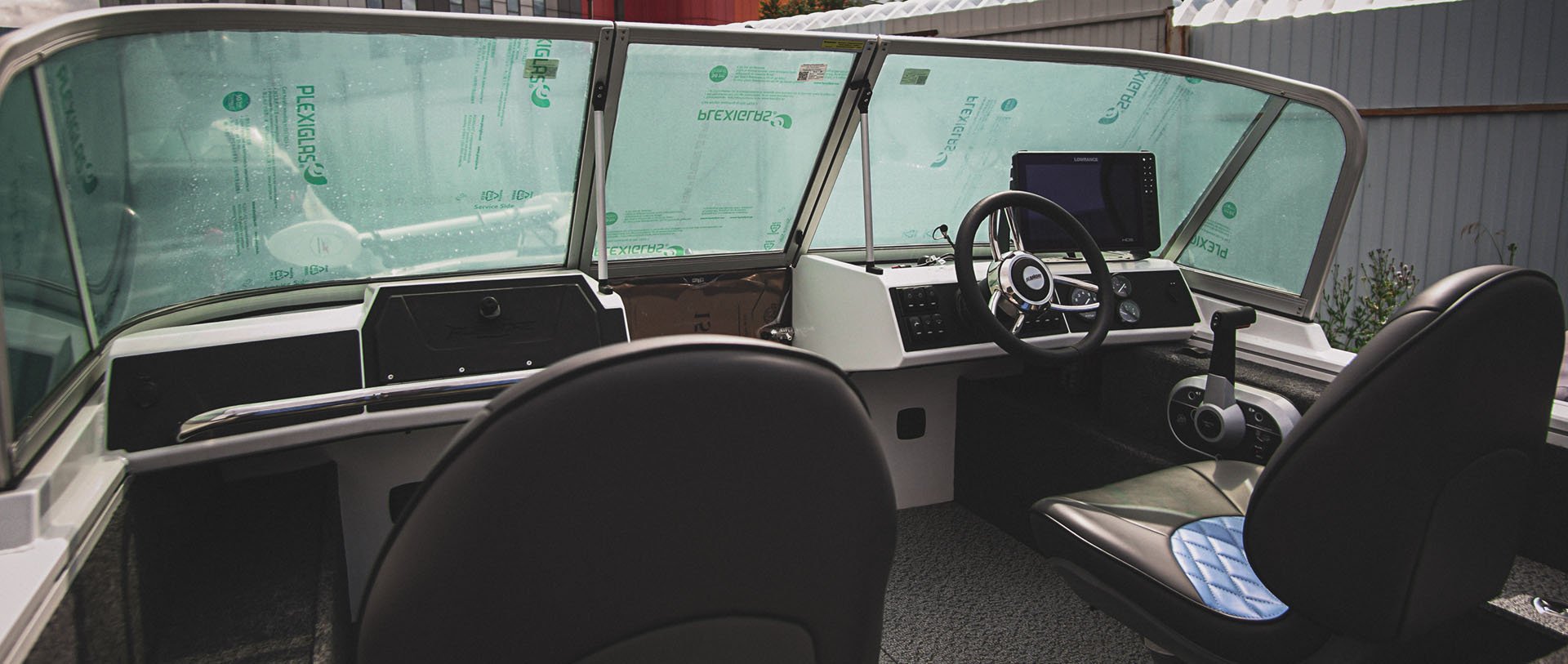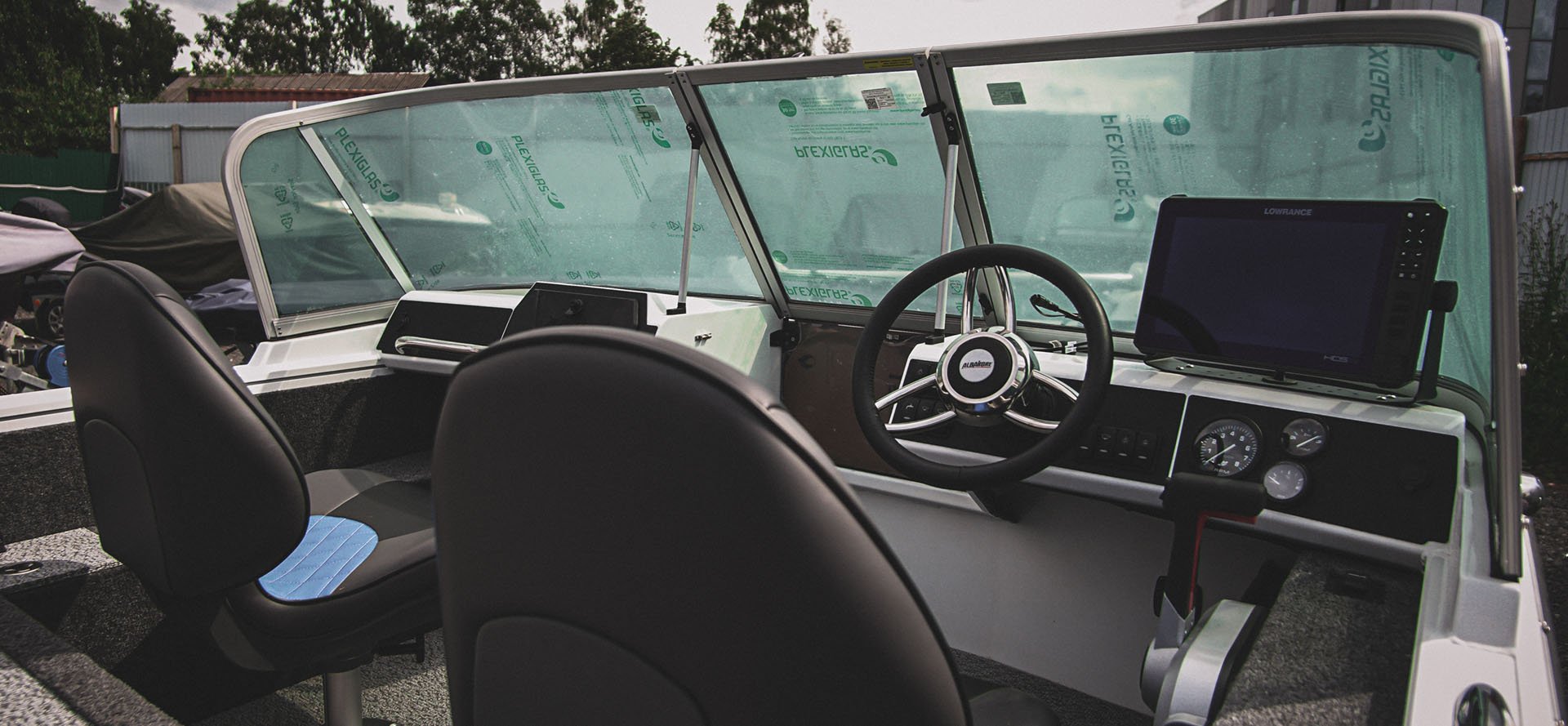 При максимально допустимой мощности мотора 115 л.с. заказчик сделал выбор в пользу 100-сильного Mercury. Скоростные характеристики почти не пострадали, зато экономия налицо — и по стоимости, и по налогу.
